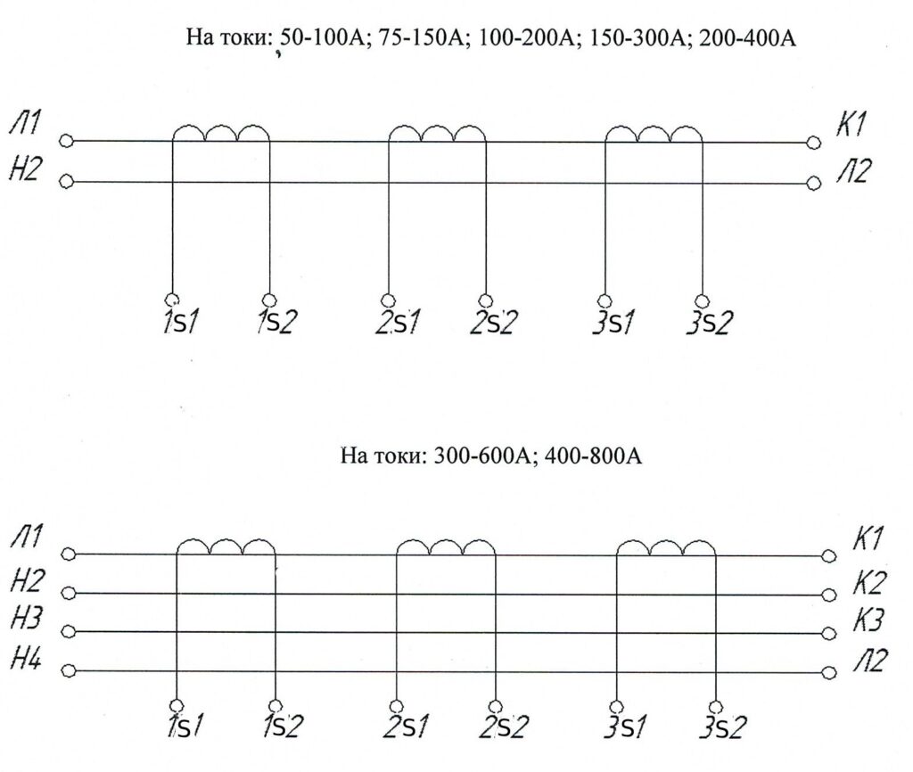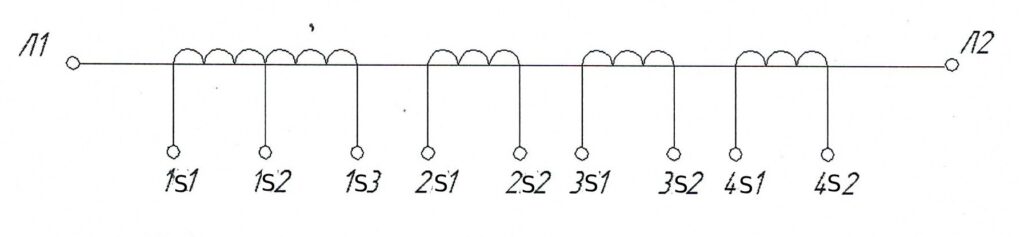 Схема розташування висновків вторинних обмоток трансформаторів ТФЗМ110Б-IV