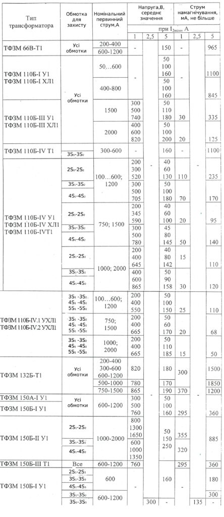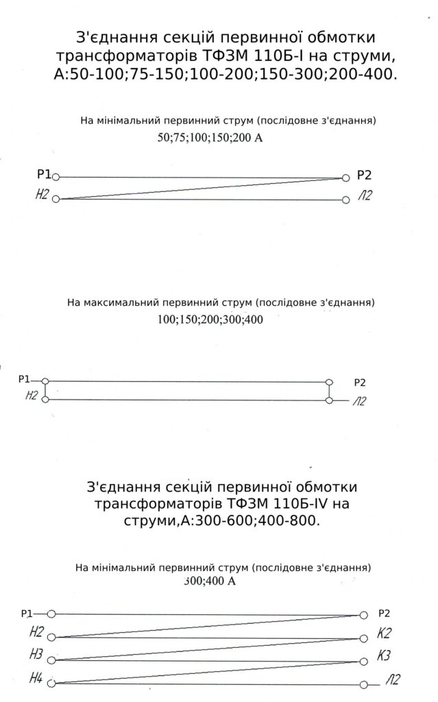 Схема розташування виводів вторинних обмоток трансформаторів ТФЗМ 110Б-I